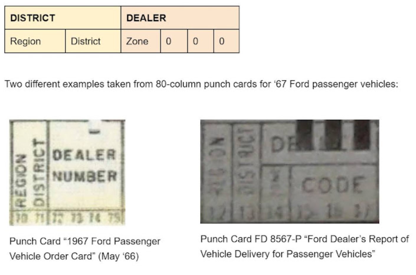 their customers (dealers). Ford Dealer Codes Ford Motor Company also assigned codes to their dealerships. The six (6) character alphanumeric codes were a bit more useful than Shelby's simply numeric system -- but then again, they had a lot more deaerships.