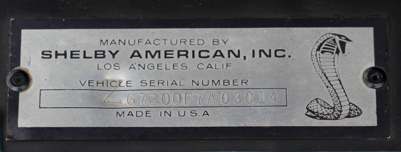 The SRG's observation remains consistent on the pattern that cars completed by Shelby American on or after April 27, 1967, received the 'Z' prefix added to their Shelby VIN plates.